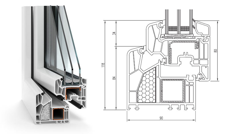 ALPHALINE 90 PROFIL 6 komorni profil nemške blagovne znamke VEKA¬. Debelina sten 3mm - KLASA A. STEKLO trojna zasteklitev 4/14/4/14/4 z nizkoemisijskim LOW E nanosom in s parametri visoke toplotne izolacije Ug=0,6 W/m²K. Vgrajen termodistančnik, ki zmanjšuje kondenzacijo in omogoča prihranek energije do 10%.